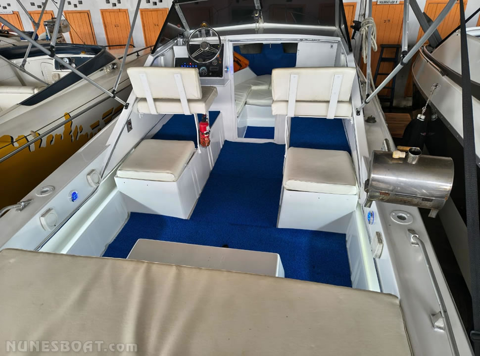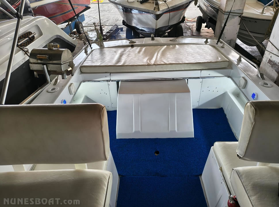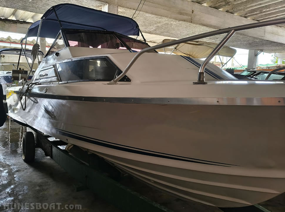 CÓD 1050 CARBRASMAR 22: 1991, vp aqad40 160hp, diesel, 620hs de uso, 30 top e 20 cruzeiro, âncora, bateria, bomba de água doce, (2) bomba de porão, bússola, capota, carreta de encalhe, churrasqueira, chuveiro de popa, (8) coletes, (2) defensas, direção comum, (2) geleiras, som…