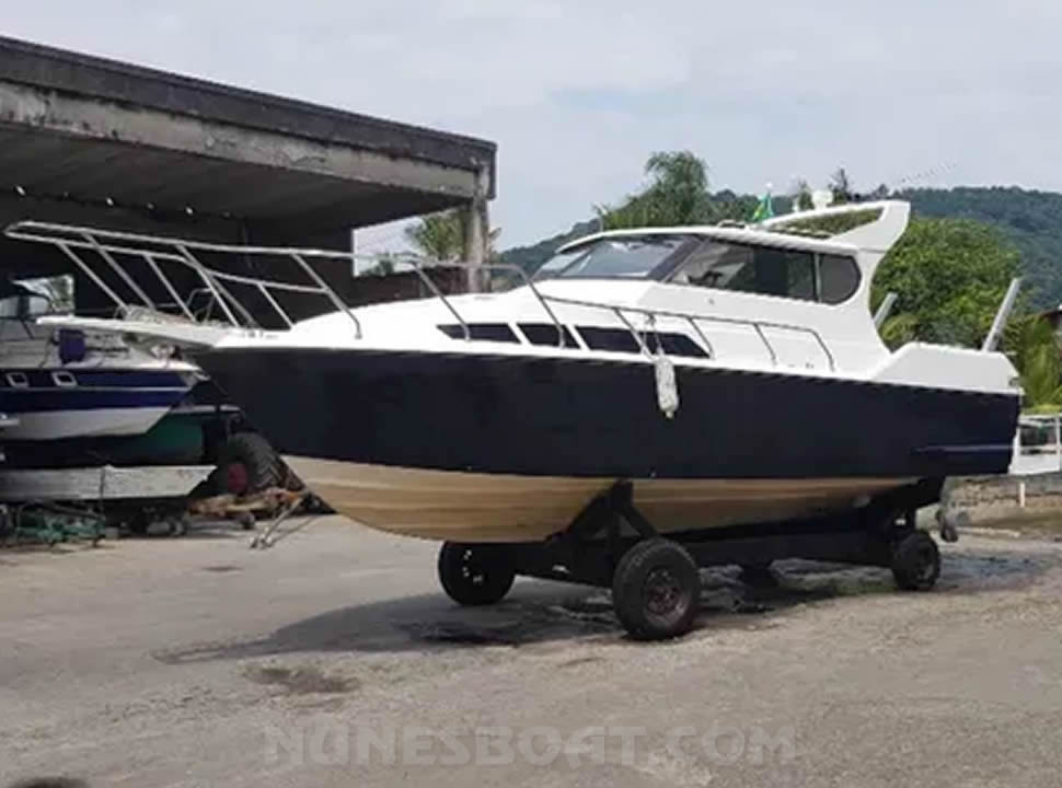 CÓD 2522 CARBRASMAR BONITO 26: 1980, 2x mb 4cc 130hp, diesel, 460hs de uso, 28 top e 18 cruzeiro, âncora, antena de vhf, (4) baterias, bomba de água doce, bomba de porão, bússola, buzina, capota fixa, carregador de bateria, carreta de encalhe, churrasqueira inox, chuveiro, (8) coletes, extintor, farol, flap hidráulico, geleira, gps c/plotter, rádio vhf, sanitário elétrico, som, strobolight, tv 40”, teca original, tomada de cais, turco de inox…
