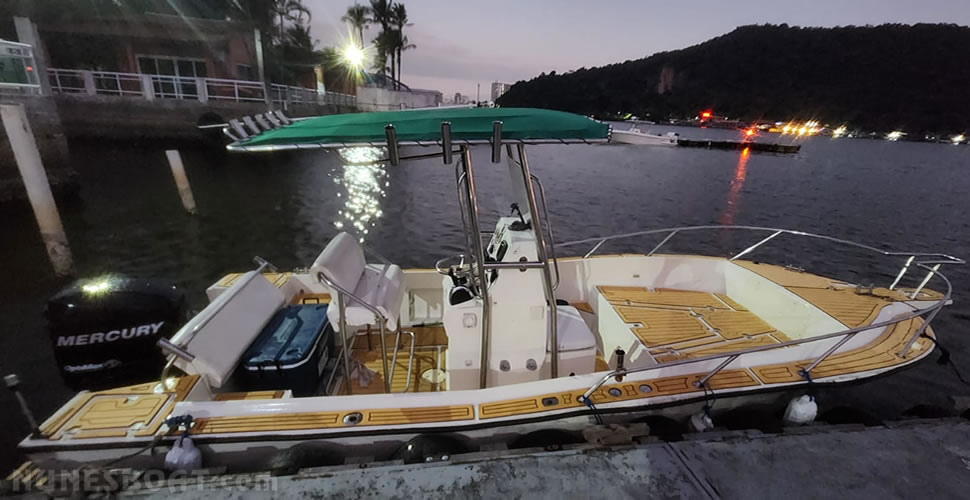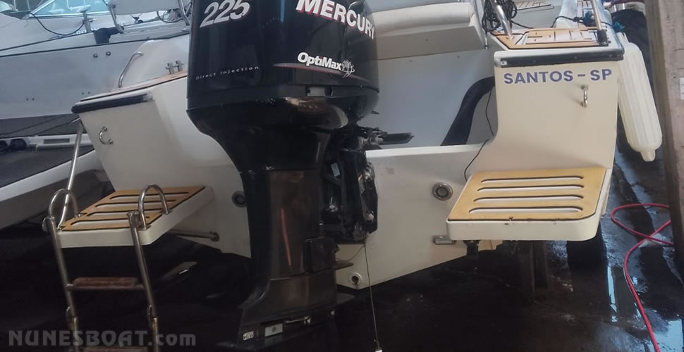 CÓD 1170 CHRIS CRAFT 23: proa aberta, 1987, mercury 225hp, gasolina, 779hs de uso, âncora, antena de vhf, bomba de água doce, (3) bombas de porão, bússola, capota t-top, carreta de encalhe, (7) coletes, (4) defensas, direção hidráulica, extintor, gps c/plotter, rádio vhf…