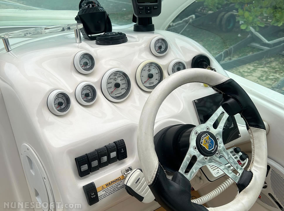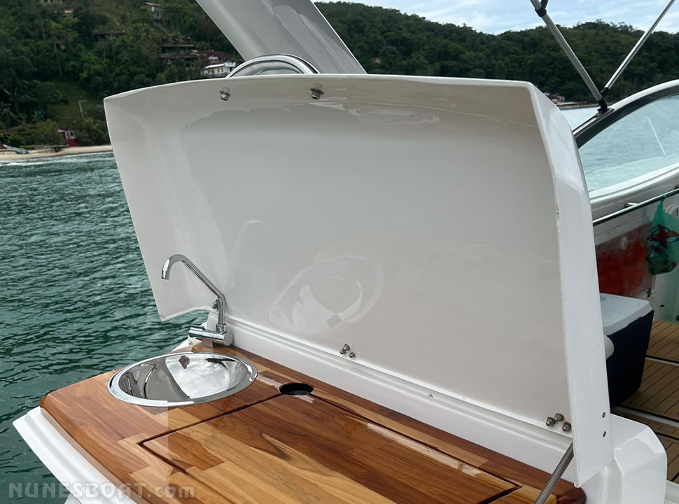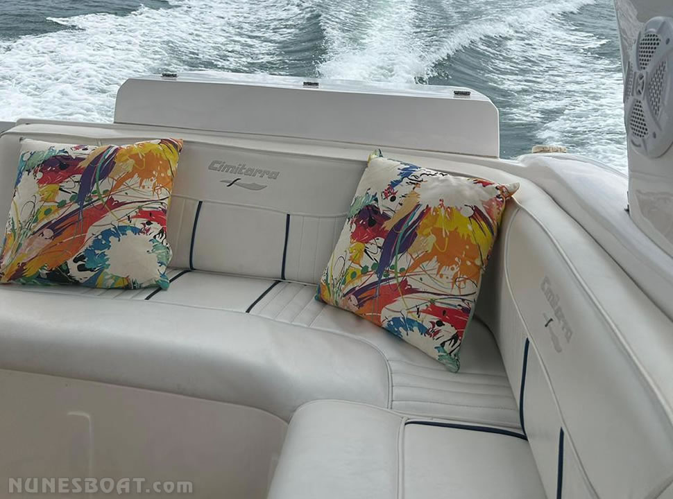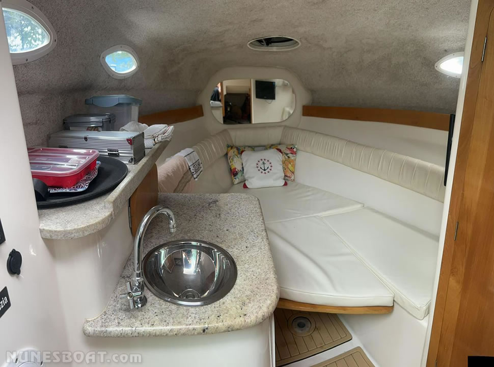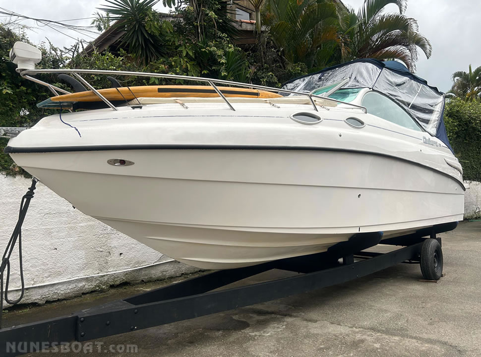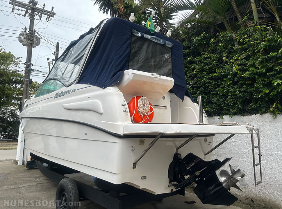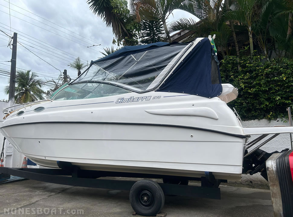 CÓD 2802 CIMITARRA 270: 2005, mercruiser 5.7 300hp ano 2010, gasolina, 290hs de uso, 40 top e 28 cruzeiro, rabeta mercruiser bravo 3, âncora, bateria, bomba de água doce, (2) bombas de porão, bússola elétrica, buzina, capota c/fechamento total, carregador de bateria, carreta de encalhe, churrasqueira, chuveiro de popa, (12) coletes, (4) defensas, direção hidráulica, farol c/controle remoto, extintores, flap hidráulico, geleira, gps c/plotter, guincho elétrico, inversor, rádio vhf, sanitário elétrico, som, teca, tv 21”, (2) ventiladores…