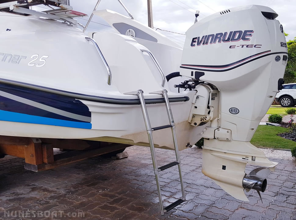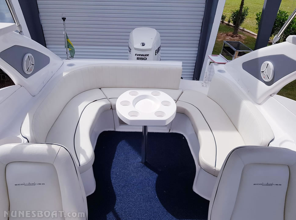 CÓD 2300 ECOMARINER 25: 2013, evinrude 250hp, gasolina, 155hs de uso, 42 top e 30 cruzeiro, âncora, antena vhf, bateria, bomba de água doce, bombas de porão, bússola, capota, carreta de encalhe, churrasqueira, chuveiro de popa, (10) coletes, (4) defensas, farol, gps c/plotter, rádio vhf, som…