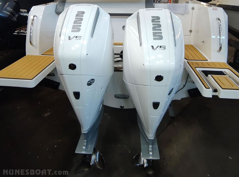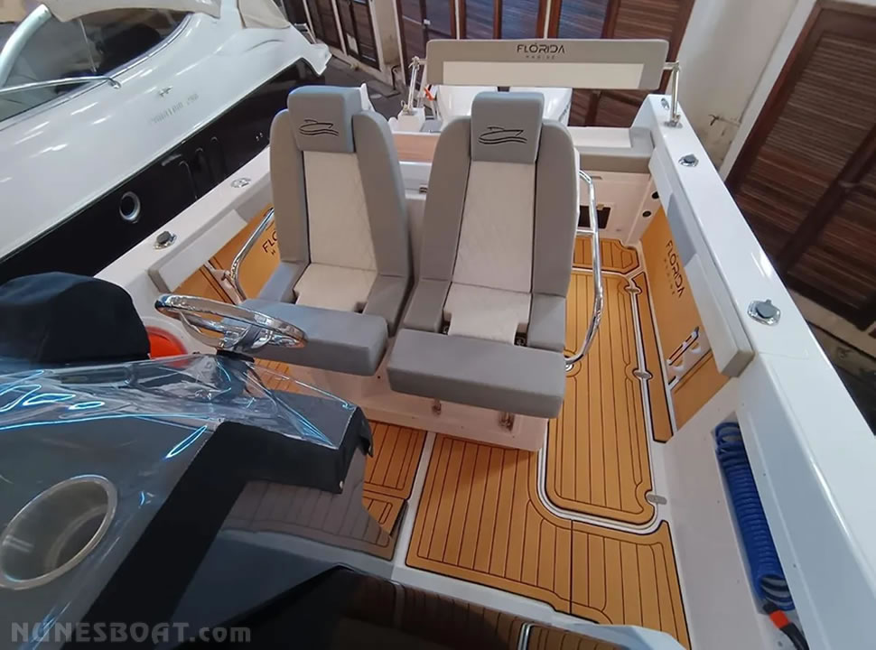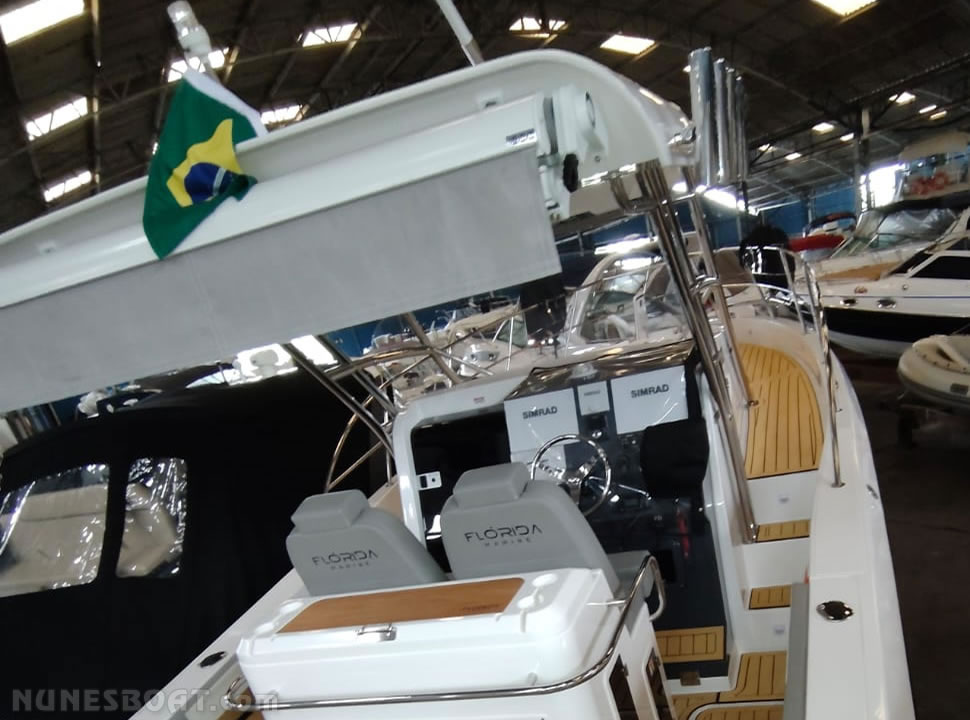 CÓD 4370 FLÓRIDA 290 XL: flórida marine, 2024, 2x mercury 225hp, gasolina, 12hs de uso, 38 top e 26 cruzeiro, âncora, baterias, bomba de água doce, (3) bombas de porão, bússola, capota hardtop c/estrutura em aço inoxidável, carreta rodo-encalhe, (11) coletes, (4) defensas, direção hidráulica, extintor, farol, flap hidráulico, geleira, (2) gps simrad, guincho elétrico, rádio vhf, sanitário elétrico, piloto automático, teca eva, toldo stobag, viveiro de isca e 2 caixas p/colocar peixes, zipwake…