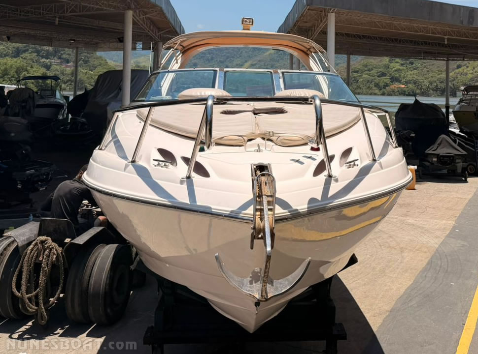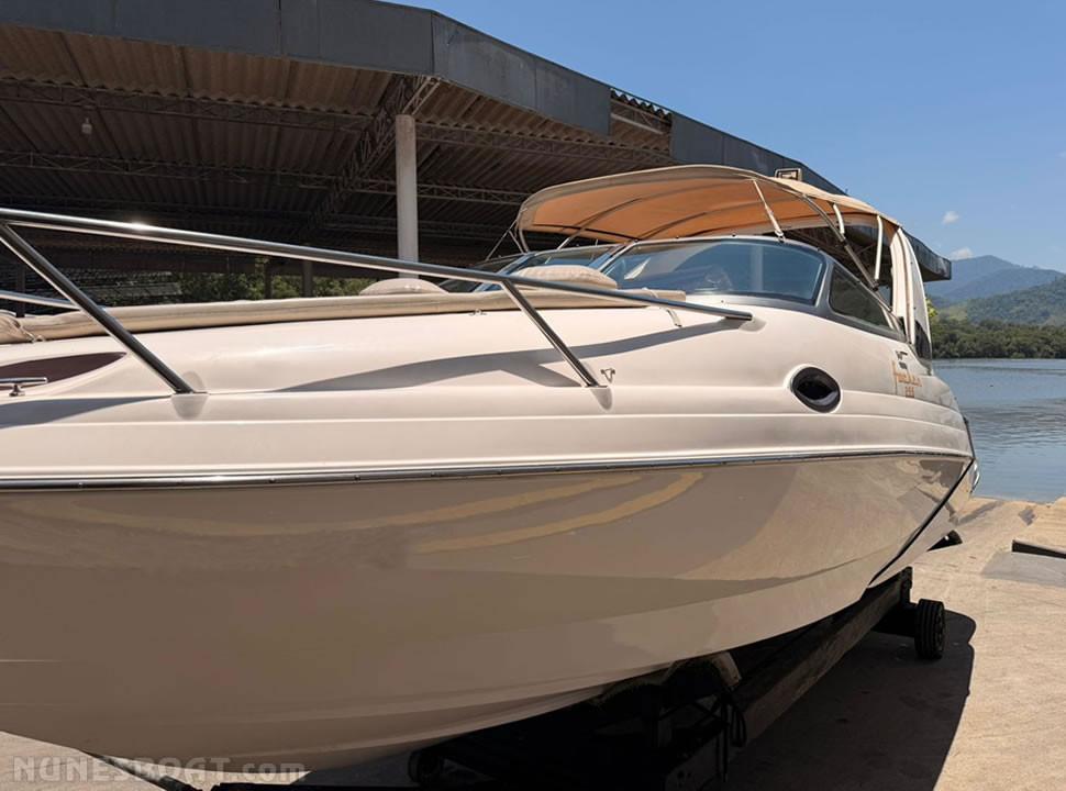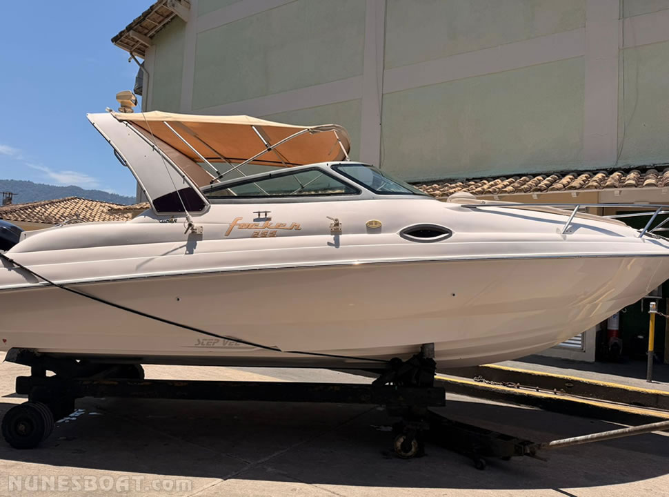 CÓD 2501 FOCKER 255: 2007, mercury optimax 225hp, gasolina, 715hs de uso, 40 top e 28 cruzeiro, âncora, bomba de água doce, bomba de porão, bússola, buzina, capota c/fechamento total, carreta de encalhe, churrasqueira, chuveiro de popa, (10) coletes, cristaleira, direção hidráulica, farol, flap hidráulico, gps c/plotter, guincho elétrico, rádio vhf, sanitário elétrico, solário de popa, som, teca eva…