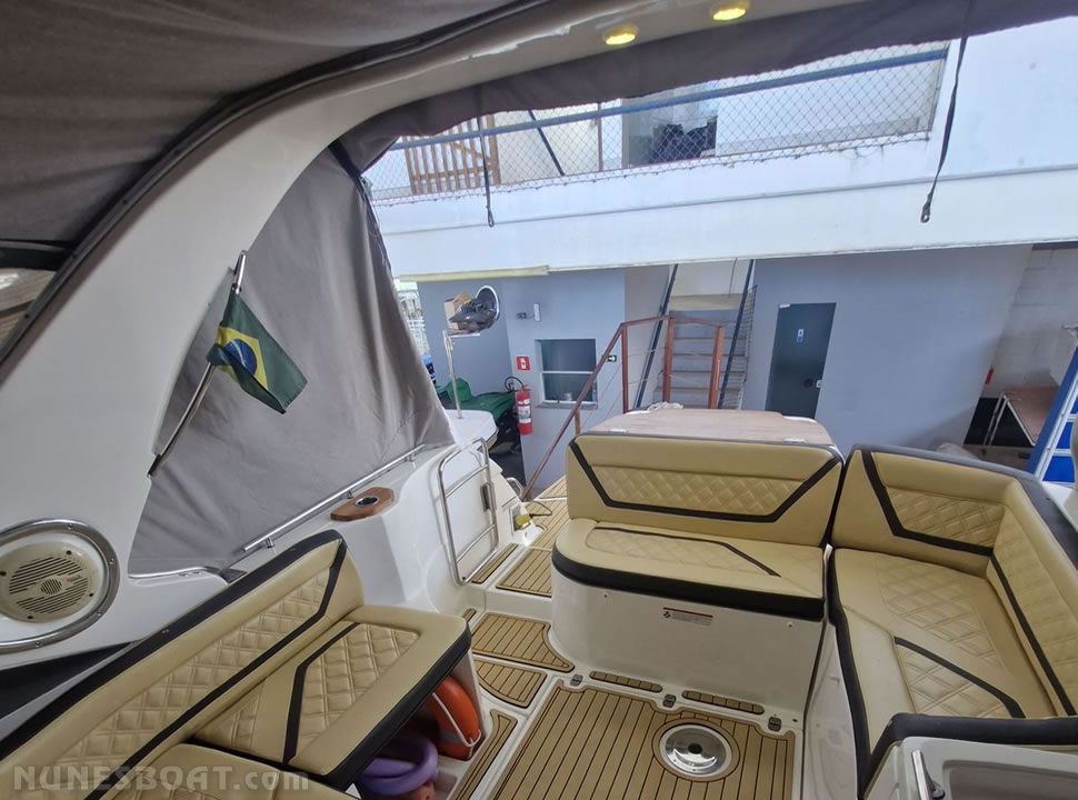 CÓD 5611 FOCKER 330 GT: 2018, 2x mercruiser 4.5 mpi 250hp, gasolina, 100hs de uso, 45 top e 33 cruzeiro, rabetas bravo three, âncora, (3) baterias, bomba de água doce, bomba de porão, bússola, capota c/fechamento total, carregador de bateria, carreta de encalhe, churrasqueira, chuveiro de popa, (13) coletes, (3) defensas, direção hidráulica, flap hidráulico, geladeira, gps c/plotter, guincho elétrico, inversor, microondas, rádio vhf, sanitário elétrico, teca, tv, tomada de cais, (2) ventiladores…