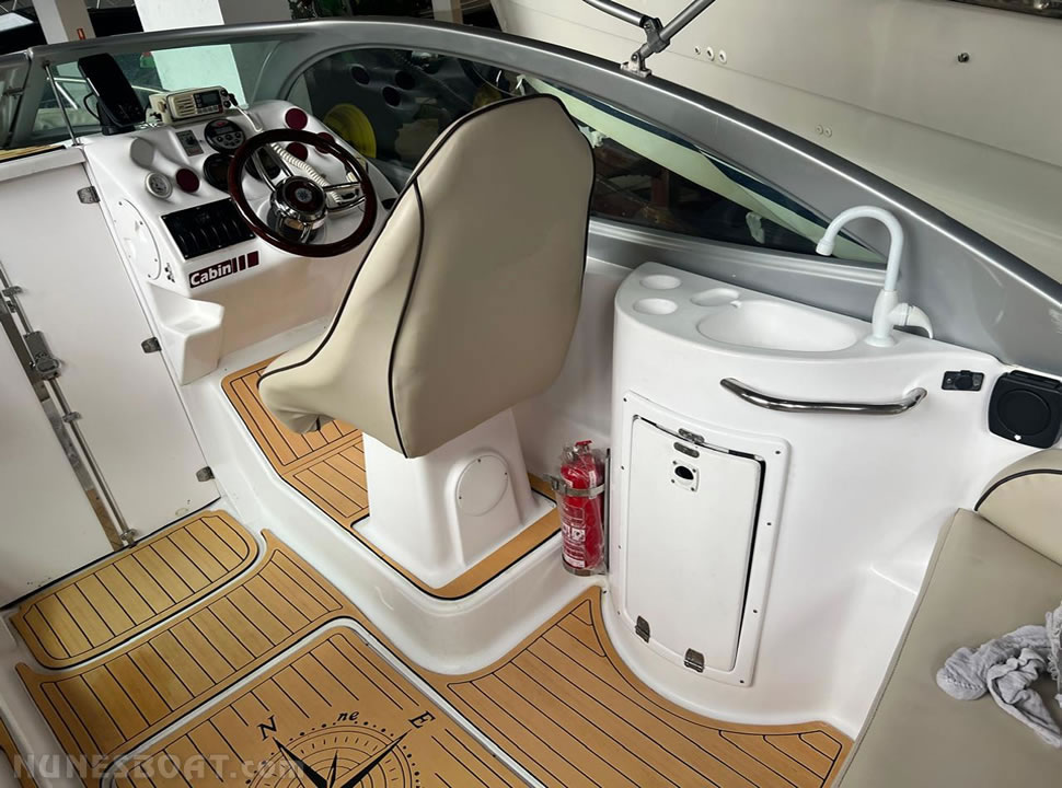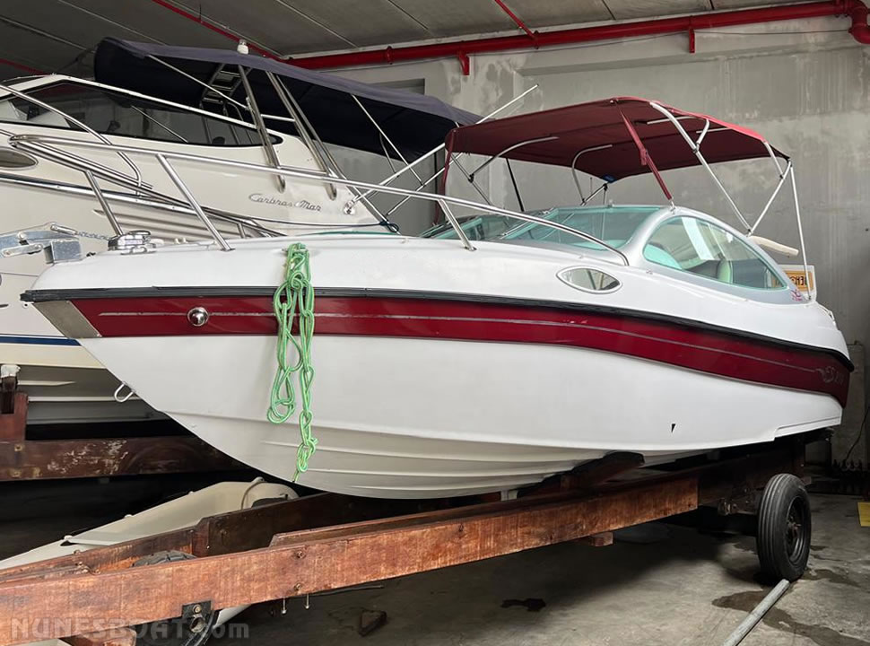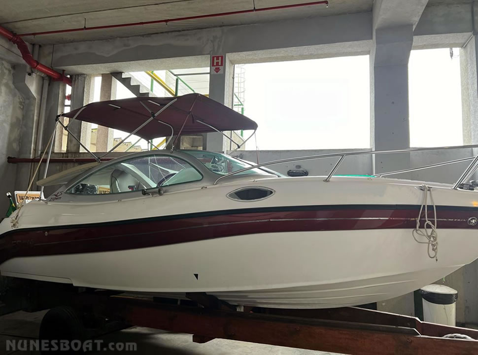 CÓD 0860 FS 210: cabin, 2007, yamaha 4t 150hp, gasolina, 399hs de uso, 50 top e 38 cruzeiro, âncora, bomba de água doce, bomba de porão, capota, carreta de encalhe, churrasqueira, chuveiro, (4) coletes, defensa, direção hidráulica, extintor, farol, geleira, gps c/plotter, rádio vhf, sanitário elétrico, teca eva…