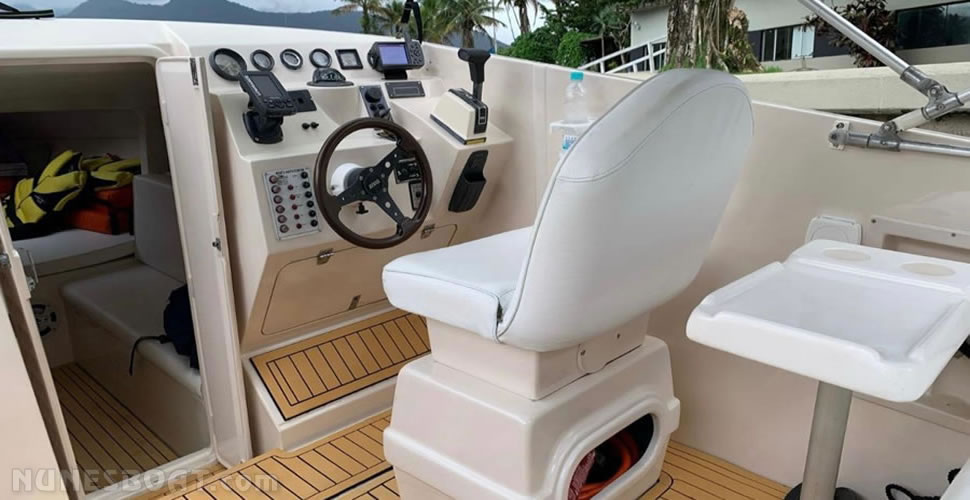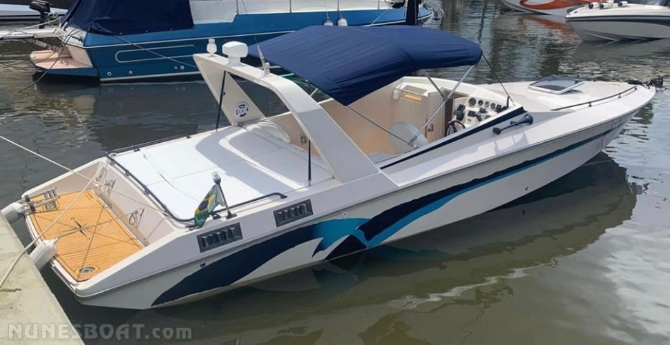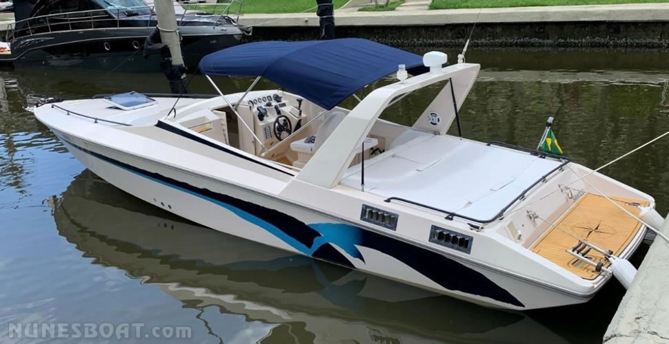 CÓD 4431 MAGNUM 29: 2002, vp aqad41 200hp, diesel, 38 top e 26 cruzeiro, rabeta vp 290 dp, âncora, (2) baterias, bomba de água doce, (2) bombas de porão, bússola, capota, carreta de encalhe, chuveiro de popa, (8) coletes, (3) defensas, extintor, farol, (3) geleiras, gps c/plotter, rádio vhf, sanitário comum, som, teca eva, ventilador…