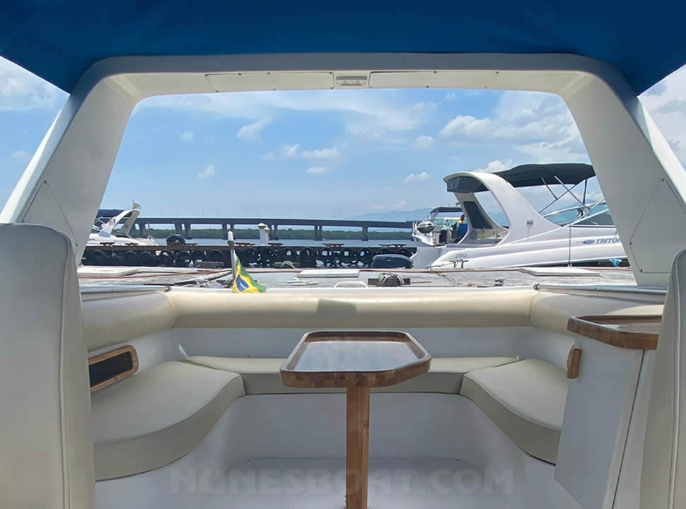 CÓD 5654 PANTHER 33: 1986, 2x vp aqad 40b 150hp, diesel, 33 top e 19 cruzeiro, rabetas vp, âncora, antena de vhf, bateria, bomba de água doce, (2) bombas de porão, bússola, buzina, capota, carreta de encalhe, chuveiro de popa, (8) coletes, extintores, farol, geleira, gps c/plotter, guincho elétrico, rádio vhf, sanitário elétrico, som, teca original, tomada de cais…