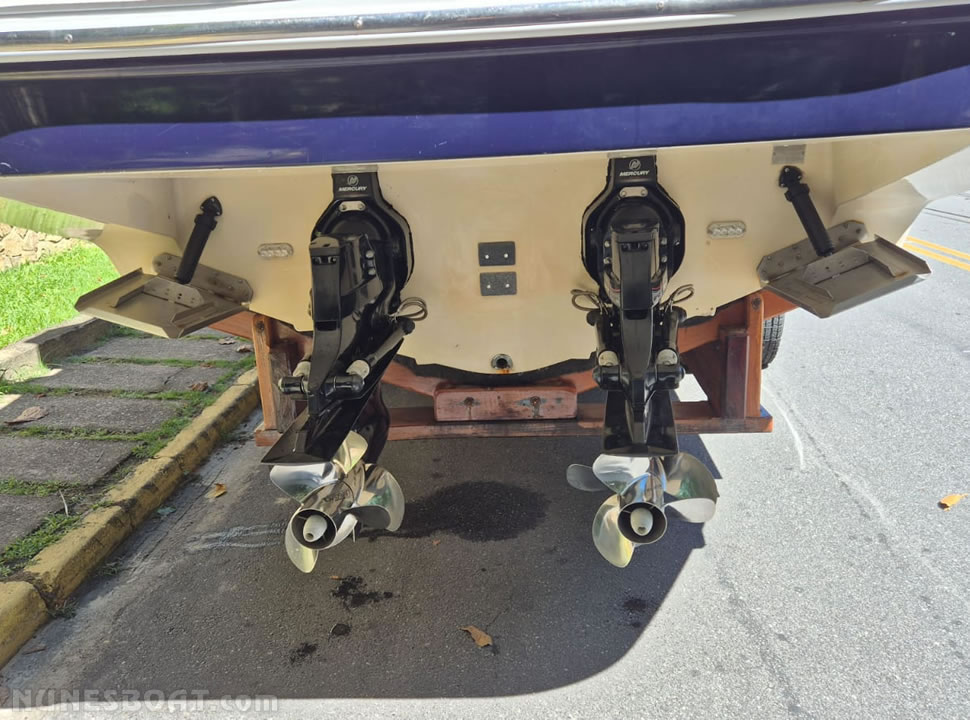 CÓD 5490 REAL 325: 2015, 2x mercruiser 4.3 220hp, gasolina, 571hs de uso, 40 top e 28 cruzeiro, rabetas bravo three, âncora, bateria, bomba de água doce, (3) bombas de porão, bote inflável tropical boats, bússola, buzina, capota, carregador de bateria, carreta de encalhe, churrasqueira, chuveiro de popa, (15) coletes, (4) defensas, direção hidráulica, (2) ecobatímetros, extintores, (2) farol, geladeira, gps c/plotter, guincho elétrico, inversor, microondas, rádio vhf, sanitário elétrico, som, teca eva, tv, tomada de cais, ventilador…