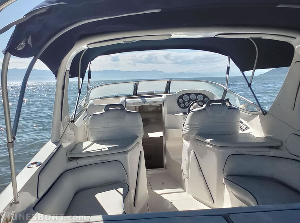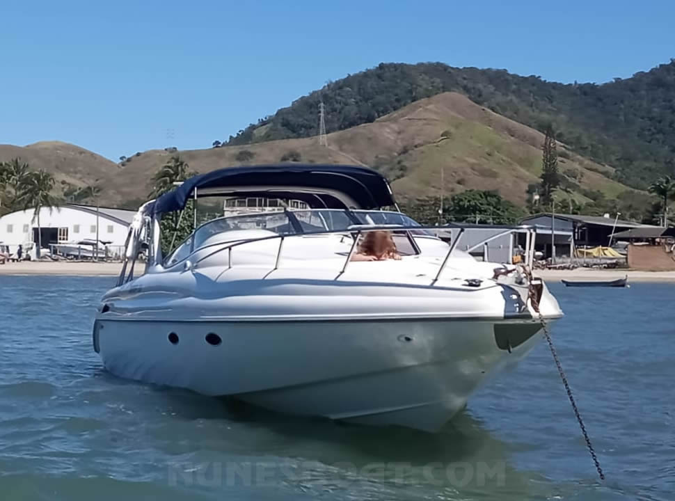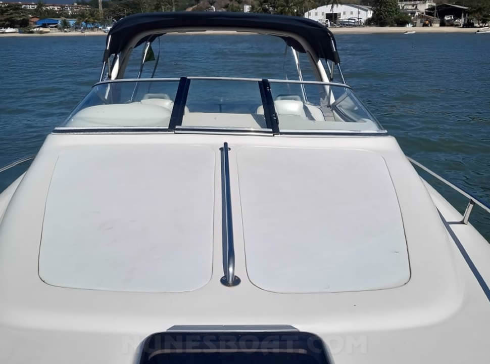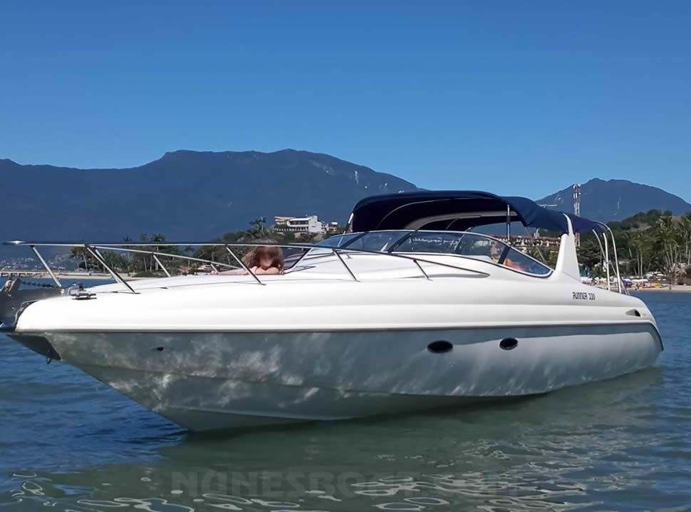 CÓD 5640 RUNNER 330: 2004, 2x mercruiser 1.7 120hp, diesel, 550hs de uso, 30 top e 20 cruzeiro, rabetas bravo one, âncora, antena de vhf, (3) baterias 150amp, bomba de água doce, (2) bombas de porão, bote inflável, bússola, capota c/fechamento total, carreta de encalhe, (13) churrasqueira, chuveiro de popa, (12) coletes, (2) defensas, direção hidráulica, extintores, farol, foguetes, flaps hidráulicos, geleira, guincho elétrico, rádio vhf, sanitário elétrico, som c/bluetooth, (2) ventiladores…