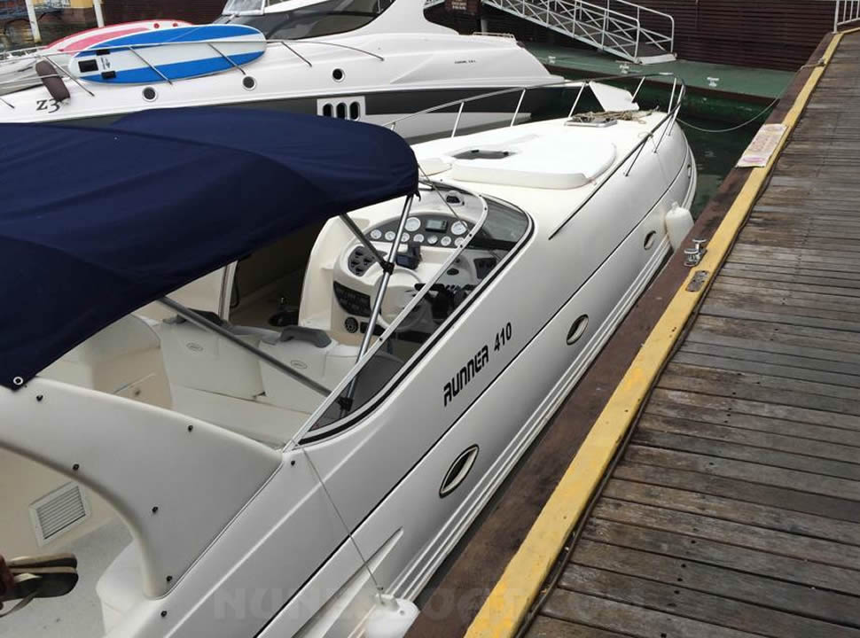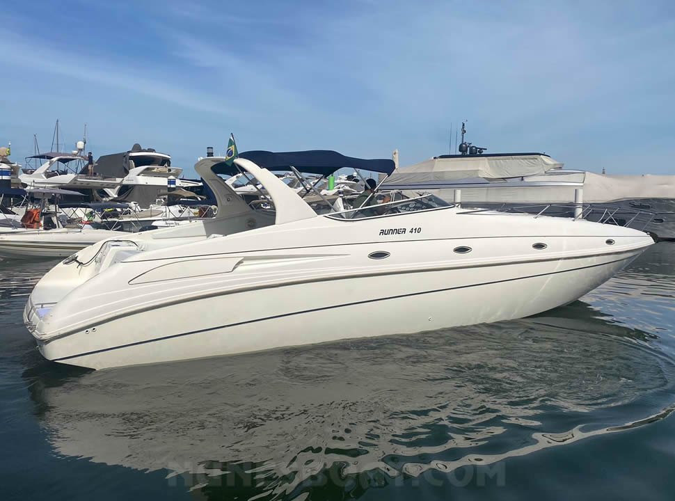 CÓD 7101 RUNNER 410: 2007, 2x mercruiser 250hp, diesel, 38 top e 26 cruzeiro, âncora, antena de vhf, ar condicionado, baterias, bomba de água doce, bombas de porão, bússola, buzina, capota, carreta de encalhe, chuveiro, coletes, defensas, direção hidráulica, extintores, farol, foguetes, geladeira, gerador kohler 5kva, gps, guincho elétrico, rádio vhf, sanitário elétrico, som, strobolight, tv, tomada de cais…